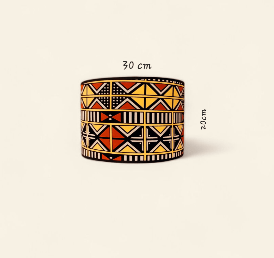 - Fabric Inspiration: Bring the spirit of West African tradition into your space with this striking lampshade inspired by Bogolan (mudcloth) textiles. Handcrafted with bold geometric patterns and warm earthy tones, it adds depth, character, and a cozy atmosphere wherever it’s placed.