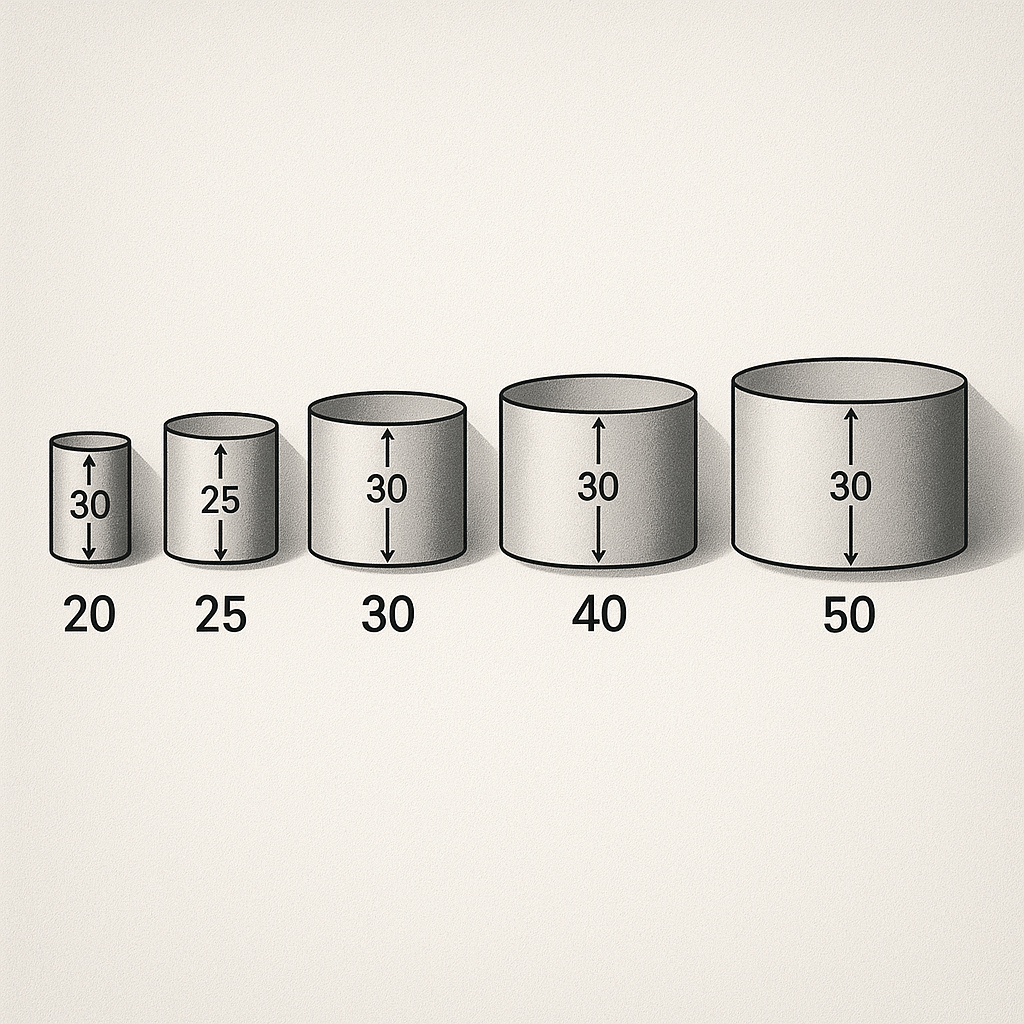 | Diameter (cm) | Height (cm) | Price (€) |